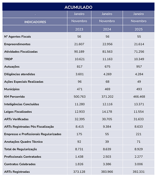 CONFIRA O BALANÇO DA FISCALIZAÇÃO NOS MESES DE JANEIRO A NOVEMBRO DE 2025