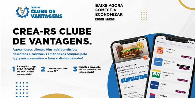 O CREA-RS também oferece o Clube de Vantagens, disponível aos profissionais registrados desde agosto de 2024, oferecendo cupons de descontos a partir de 10% para compras e um serviço de cashback que pode ser utilizado para zerar a anuidade dos profissionais da área tecnológica.